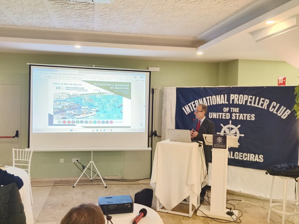 La Autoridad Portuaria de la Bahía de Algeciras (APBA) ha presentado ante el Propeller Club de Algeciras los avances de su Estrategia Verde, una hoja de ruta iniciada en 2009 que sitúa al puerto como referente en sostenibilidad a nivel europeo. En el coloquio participaron Juan Antonio Patrón, jefe del Área de Desarrollo Sostenible, y Fidel Ruiz, jefe del Departamento de Sostenibilidad, quienes expusieron una transformación que trasciende lo ambiental para convertirse en una herramienta transversal que abarca todos los ámbitos portuarios.
