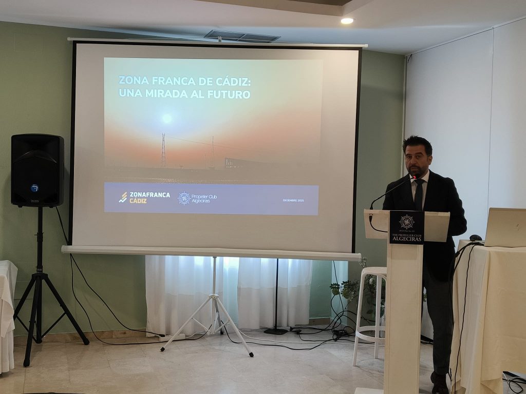 El delegado del Consorcio de la Zona Franca de Cádiz, Fran González, ha defendido durante un almuerzo-coloquio organizado por el Propeller Club de Algeciras en el profundo cambio experimentado por la institución en los últimos años, pasando de una situación de quiebra técnica a consolidarse como motor económico e inversor de referencia en la provincia, con especial proyección sobre la Bahía de Algeciras.
